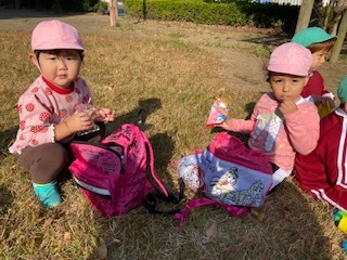 リュックにおやつを入れて遠足気分
