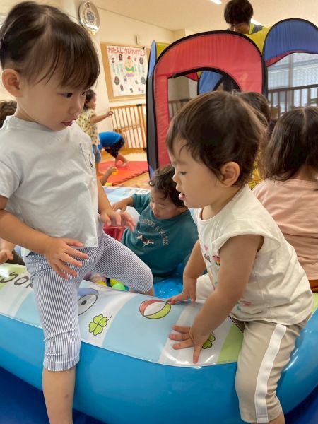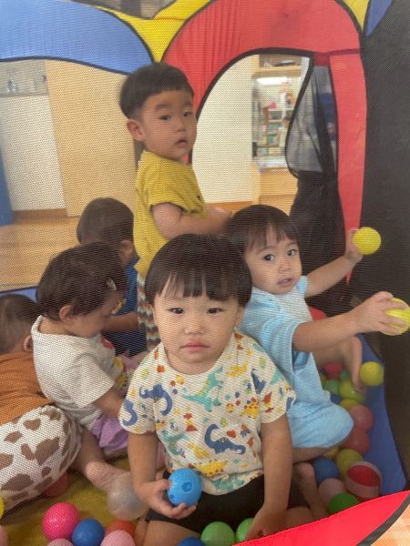 うだるような暑さの中でもひよこ組の子供たちは元気一杯です!
