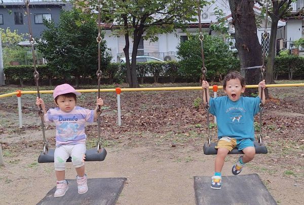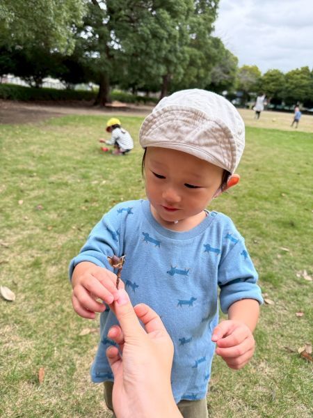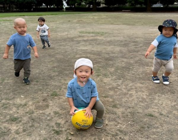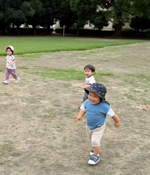 公園では、追いかけっこやボール遊び、すべり台にどんぐりを探したりと