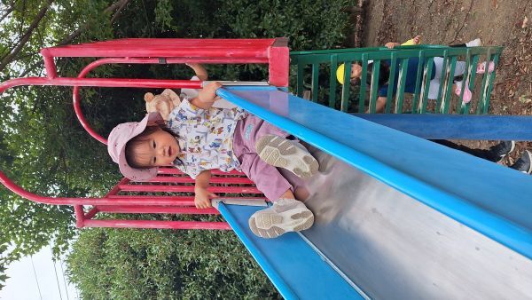 初めてお散歩ロープを持ち、歩いて見福公園まで行ってきました。