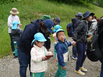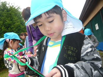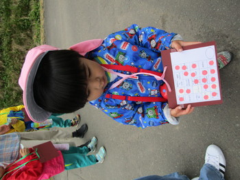 お天気が心配された『親子遠足』。予定していた日は雨が降ってしまい順延となりましたが、てるてる坊主が見守る中、旭ヶ丘公園で親子遠足が行われました。お家の人とニコニコ笑顔で手を繋ぎ元気に出発!花や虫など自然を感じながら頑張って歩く達成感を共有しました。 ビンゴカードを持ち、各クラスで旭ヶ丘公園の中を散策し、「サルだ!」「赤いお花ここにあるよ!」などお家の人と会話を楽しみながらビンゴを完成させていました。 毎年恒例の各学年ごとのゲームも盛り上がり、集合写真撮影も撮ることができ、今年も思い出に残る楽しい親子遠足となりました。 | ||