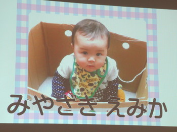6月は8名のお友達が誕生日を迎えました。ニコニコ笑顔で発表する子、初めて大勢の前で立ち、緊張してちょっぴり泣いてしまう子、様々な表情が見られました。緊張していた子も誕生日ペンダントをもらい、みんなからお祝いされると、とても嬉しそうにいていました。 | ||