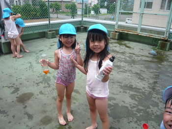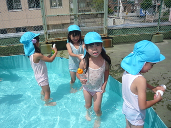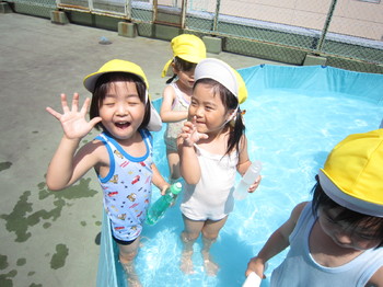 7月も半ばを過ぎ、やっと陽ざしが眩しい季節になりました。子ども達もずっと楽しみにしていた水遊び!! 笑顔いっぱい!元気いっぱい!の子ども達の姿を紹介します。