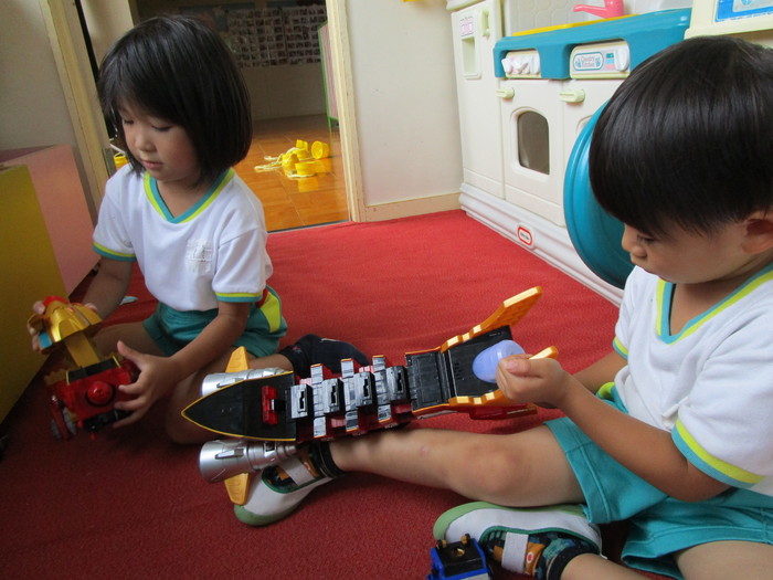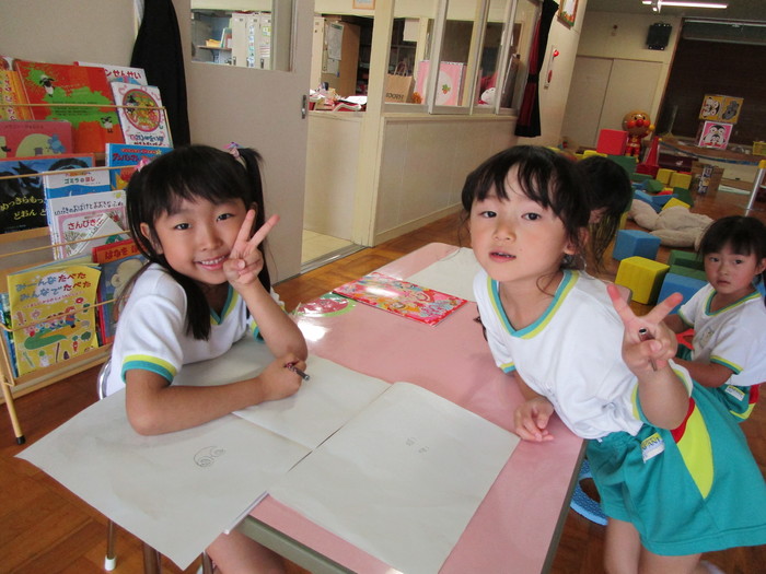 夏休み中のなかよしルームにもたくさんの子ども達が遊びに来てくれ、幼稚園 は毎日笑い声にあふれていました。積み木遊びや折り紙、水遊びと汗をたくさん かきながら様々な遊びを楽しんだり、お昼ご飯の時間には違うクラスのお友達と 一緒にシートを並べて食べてみたり…いつもとは少し違った幼稚園の一日を楽し みました。 | ||