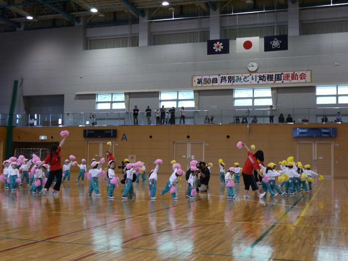 本園三大行事の一つである“運動会”が、なまこ山総合体育館で行われました。この日に向け夏休み明けから毎日練習に取り組んできた子ども達。本番を迎えちょっぴり緊張の表情を浮かべている子、嬉しくてはしゃいでいる子、涙を浮かべている子など…様々な姿が見られましたが、一人ひとりが最後まで精一杯に取り組み頑張る姿が目に映りました。会場に集まって下さった沢山のお客様からのあたたかい声援や拍手は、子ども達の頑張る力をパワーアップさせ練習以上の力を発揮させてくれたように感じられます。保護者・祖父母・卒園児・未就園児など…競技への積極的なご参加をいただき、また、会場設営や撤去作業では役員さんやボランティアパパからのご協力をいただいたおかげもあり、開園50周年を迎えた本園の節目である今年度の運動会を無事終えることができました。本当にありがとうございました。 | ||