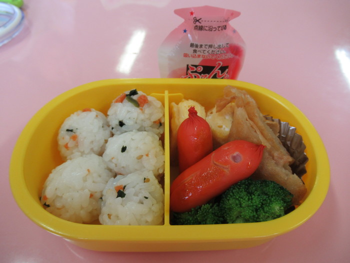 子ども達がとっても楽しみにしている…お弁当♡ お弁当箱の中には、おうちの方の愛情がたっぷり詰まっていて、 とってもおいしそうです(*^▽^*) 「先生、見てみて~!」「あっ!私もミートボール入ってた!一緒だね♪」「ふりかけ、ぷりきゅあなんだよ!」などと、友達との会話も弾み、それぞれ昼食時間を楽しんでいます。 今回は、そんな愛情たっぷりのお弁当をご紹介! | ||