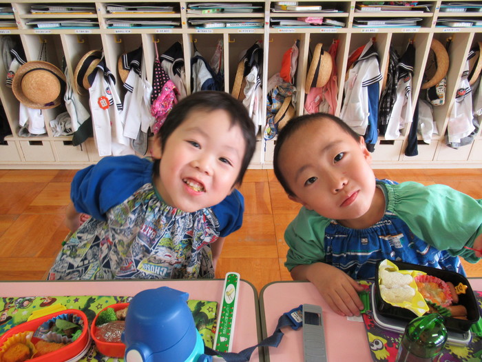 ばら組さんは、おいしそうなお弁当に思わず…パクッ! 写真を撮るのを待ちきれずに、 ぺろっと食べてしまったお友達もいたようです(^0^)(笑) | ||