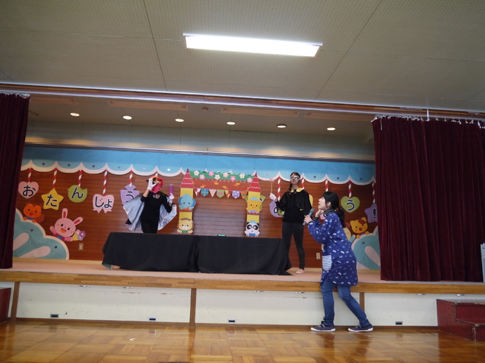 1月31日(木)に、1月の誕生会が行われました! 今月のお誕生会はみどり幼稚園、リリー保育園の子ども達はもちろん、ちびっこランドのお友達も一緒に参加しました(*^▽^*) 今月の誕生者は11名。 誕生者の子ども達はちょっぴり緊張しながらも、マイクを持って堂々とお名前と何歳になったのか‥そして今月の質問「好きな遊び」を発表してくれました。 小さいころの写真が出るたびに「あっ!〇〇くんだ!!「〇〇ちゃんじゃない?」と盛り上がりました。 そして…今月のお楽しみは【マジックショー!】 USAでおなじみのDAPUMP…ならぬ、DAPOMP(ダポンプ)さんが登場し、様々なマジックを披露してくれました! マジックの最後にはみんなでUSAを踊り、楽しく会は終了しました! 誕生会の様子をぜひご覧ください♪ | ||