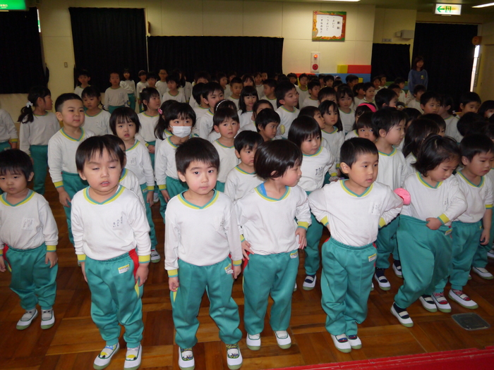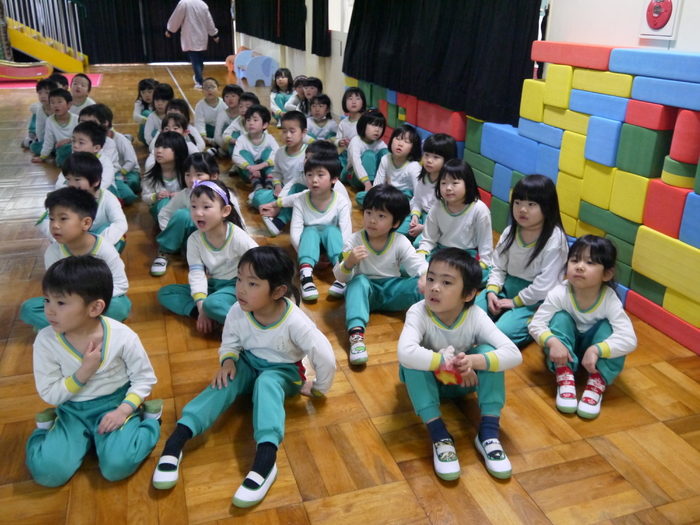 3月3日は、ひな祭りですね!今年も幼稚園では、お雛人形を飾って、『ひなまつり会』を行いました。みんなでホールに集まり、ひなまつりにちなんだ話を聞いたり、大きなスクリーンに映った絵本を読んだりと、ひなまつり会を楽しみました。みんなで歌った「うれしいひなまつり」の歌は、とっても上手で、きっとお雛様も喜んでくれたことでしょう♪ お昼ご飯の給食は、パーティーメニューとなっており、「エビフライ入ってる~!」「ロールケーキもある!!」と子ども達は大喜びでした。 | ||