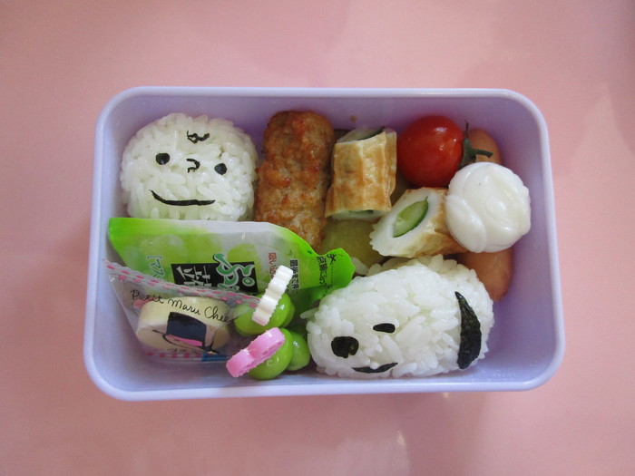 入園・進級から一週間が経ち、笑顔で登園してくる子ども達が増えてきました。「今日はお弁当の日?」「キャラ弁持ってきたよ!」と、嬉しそうに教えてくれる姿が見られます。昼食の時間が近づくと、各クラスから元気なお弁当の歌やいただきますのご挨拶が聞こえ、お弁当の蓋を開けた子ども達は「先生、見て!」「デザートもあるよ♪」と、目を輝かせながら見せてくれます。今回は、そんな愛情がたっぷり詰まったお弁当をご紹介します♪ | ||