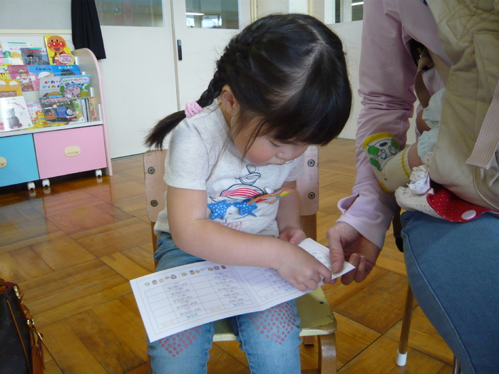 令和元年5月15日(水)より、子ども・子育て支援事業『ちびっこランド』が開始しました! 園の行事により変更がありますが、月2回程度を予定している2歳児対象の『ちびっこランド』。 初回の今日は5組の親子が参加して下さいました! 今回の内容は『幼稚園で遊ぼう!』でした♪ 保護者は、出身地やそれぞれのお悩みなど…サイコロに書かれている様々なトークテーマに沿ってお話をし、交流を楽しんでいました。 また、同じ教室内では子ども達が先生達と一緒に園のおもちゃで自由遊びを楽しみました。 初回ということもあり登園時は緊張している親子もいらっしゃいましたが、園で過ごすうちにだんだんと表情が柔らかくなっていきました(*^▽^*)次回は…来週22日(水)の『親子で遊ぼう!』です(^_-)-☆ 親子で触れ合える遊びを企画していますので、ぜひご参加下さい♪ | ||