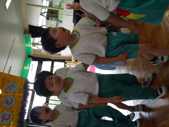 5月31日(金)に5月の誕生会が行われました。今月は、9人のお友達がお誕生日を迎えました。ちょっぴり緊張しているお友達もいましたが、元気いっぱいステージ上で、自分のクラス名と名前、何歳になったかを発表してくれました。担任の先生からのエピソードも聞けて、子ども達は、ニコニコ笑顔😊“大きくなったら何になりたい”の質問では、「スタートゥインクルプリキュアになりたい!」「警察官になりたい!」と答えてくれるお友達もいました。お楽しみ会の『人形劇』も盛り上がり、今月も楽しい誕生会になりました♪ | ||