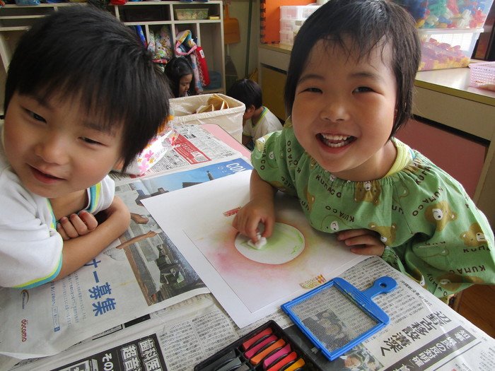 来月の8月1日(水)~31日(土)の期間、新城にある〝芸術文化交流館〟にみどり幼稚園の子ども達の絵画が展示されます。(詳細は、1学期終業式に配布の〝たのしいなつやすみ〟に記載されています) 各クラス、素敵な絵画を作成中。様々な技法表現を楽しみながら作成している子ども達の生き生きとした姿を紹介します。 | ||