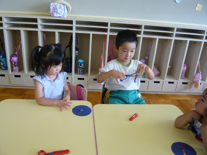 今月、2回目のちびっこランド。 9名の未就園児のお友達と一緒に附属保育園リリーの2歳児のお友達が7名遊びに来てくれました。今回は、8月3日(土)のゆかたの集いに向けての活動として、短冊作りと子ども盆踊りの練習をしました。参加を重ねるごとに幼稚園や年長組のお兄さん、お姉さん達にも少しずつ慣れ、不安そうな様子も見せずに元気に過ごす時間が多くなりました。次のちびっこランドは、8月3日(土)幼稚園行事『ゆかたの集い』です。今日、製作した短冊にお願い事を書いて持って来て下さい! ちびっこランドのお友達は、たなばたさまにどんなことをお願いするのかなぁ…。 楽しみにしています。 | ||