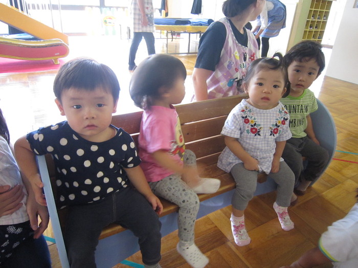 ちびっこランドのお友達は、 年長組のお友達と手を繋いで一緒にトイレに行ったり、 リリー保育園2歳さんも一緒に、朝の会をしたりしました(*^▽^*) | ||