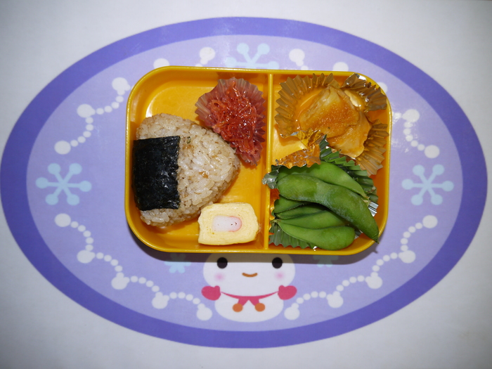 令和元年 11月 25日(月) ☆ おかかおにぎり ☆ カニかま入り玉子焼き ☆ ロームキャベツ ☆ ちりめんじゃこ ☆ 枝豆 | ||