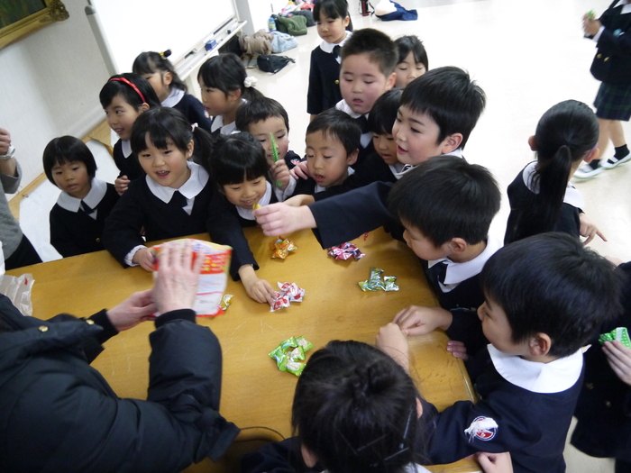 去る、12月1日(日)に開催されました〝芦別市民のど自慢の集い〟に年長組のお友達が参加しました。 日曜開催にも関わらず、園の主旨にご賛同いただき95%ととても高い参加率。たくさんの子ども達が参加して下さいました。 当日も幼稚園に集まってきた子ども達は、いつも以上にウキウキ☆ハイテンション!!ステージに立つのを楽しみにしている様子でした。控室でもピアノの音が聞こえると自然と唄い出し、踊っていた子ども達。いよいよ、出番となりステージに立ち、緞帳が上がった瞬間に会場から溢れ出た歓声から市民の皆さまたちもみどり幼稚園の子ども達の登場を楽しみにしていてくれたんだなぁ~ととても嬉しく思いました。 初めての出場でしたが発表会と同じ会場ということもあり、子ども達も緊張することなく キラキラとした笑顔で元気に歌を発表することが出来ました。終了後も『たくさん拍手してもらえて嬉しかった!』『楽しかった!!』『いっぱいお客さんいたね』と思い思いに感想を話していた子ども達でしたがみんなとっても満足げな表情でした。 子ども達へのたくさんの応援、拍手をいただき本当にありがとうございました。 控室での様子も含めた、子ども達の様子を紹介します(o^―^o) | ||