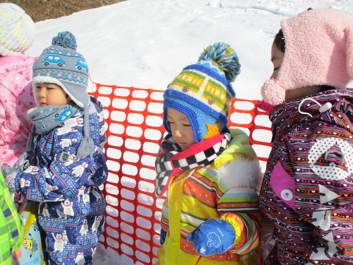 冬の園外保育2回目のそり滑りを2月6日(木)・10日(月)に行ってきました。 友達と一緒に滑ったり、スーパーマンのように両手両足を伸ばし滑ったりと、限られた時間の中で沢山そり滑りを堪能した子ども達!たまにそりだけが滑ってくることも…(笑) 今年もみんなで楽しくそり滑りが出来て、子ども達もとても嬉しそうでした♪ | ||