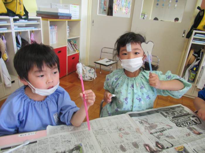 歯磨き・うがいの大切さを教えてもらいます。 | ||