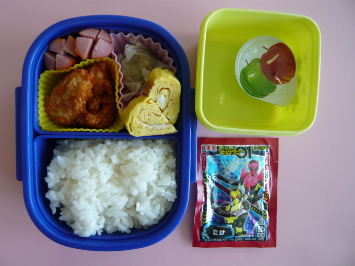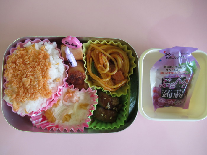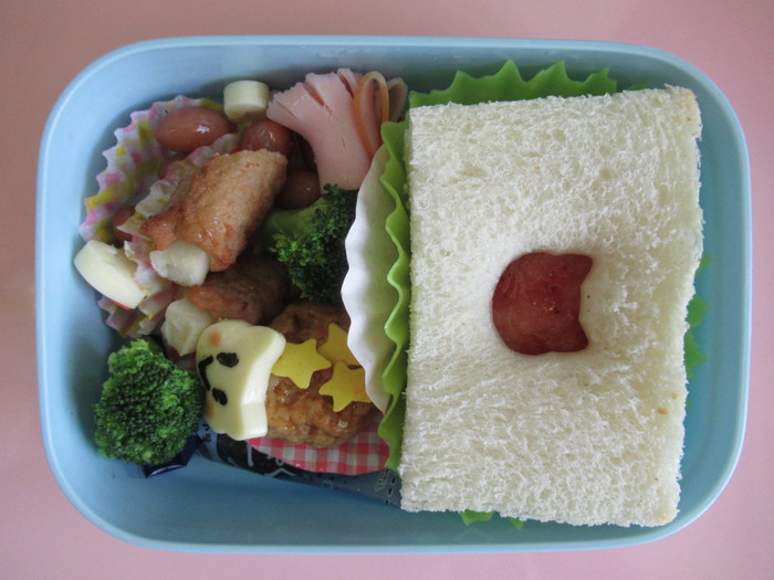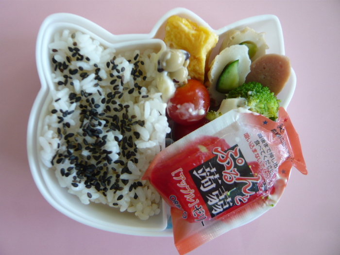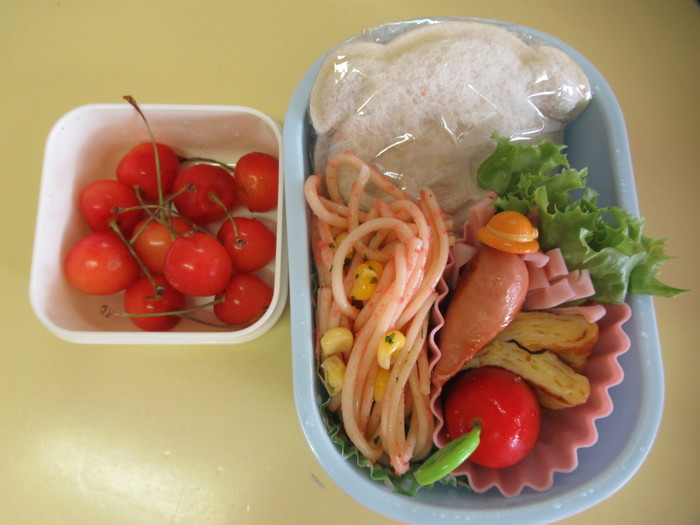 今月の愛情いっぱい手作りお弁当!! おうちの方が作ってくれたお弁当を毎回、嬉しそうに見せてくれる子ども達。4月の頃は、なかなか全部食べることが出来なかった子もクラスの友達と一緒に食べている中で苦手な物にも挑戦したり、最後まで残さずに食べようと意欲的に頑張る姿も見られました。今後もモリモリ食べて、元気パワーいっぱいになって欲しいと思います。 | ||
