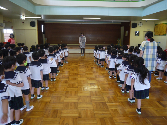 4月に進級、入園してから約4ヶ月。新型コロナウイルス感染症の拡大予防の中、例年とは違った園生活ではありましたがマスク着用効果もあり、子ども達は体調を崩したり、感染症に罹患する子も少なく毎日元気に過ごすことができました。これから長い休みに入りますが新型コロナウイルス感染症の予防を十分にしながら楽しい夏休みにしてほしいと思っています。2学期に始業式には、日焼けをし逞しくなった皆さんに会えるのを楽しみにしています。 | ||