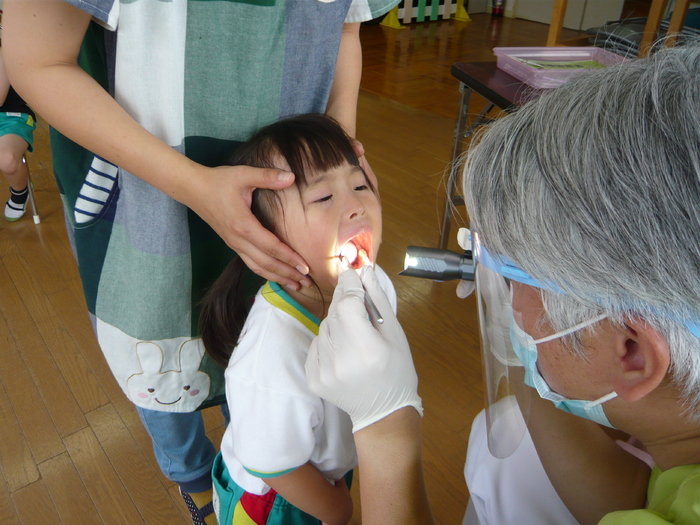 リリー保育園も含む全園児で、順延となっていた歯科検診を行いました。朝から「歯磨きしてきたよ!」「大きな口、開けられるよ!」と、気合十分な子ども達の姿が見られました。検診時には、ドキドキした表情を見せる子や、緊張から口を開けなくなってしまう子も中にはいましたが、終了時にはすっきりした顔で「ありがとうございました!」とお礼を言う姿も…。年長児の中には、永久歯が生えてきている子もいました。歯科検診の結果は後日配布しますので、これを機に歯の大切さをご家庭でも話し合ってみて下さい。 | ||