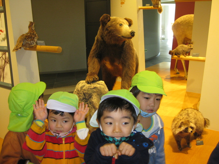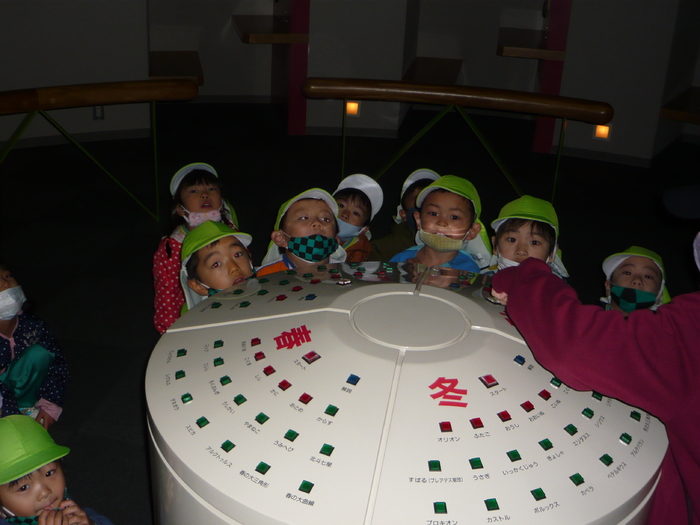 10月21日(水)年中組のお友達が社会見学に行ってきました。場所は、道の駅の隣にある《星のふる里百年記念館》★ 園バスに乗ってのお出掛けということで子ども達もウキウキワクワク✨ 百年記念館に到着すると学芸員さんがお出迎えをしてくれ、見学開始!!星空の美しいまちの芦別の夜空をスタードームで観察すると子ども達から『うわぁ~』『きれい!!』と歓声が上がりました。次に豊かな自然と動植物や先住民の文化、開拓移民・産業の歴史を見学し、この記念館の目玉ともいえる〝マジックビジョン小劇場〟で炭鉱が全盛期だったころにタイムスリップし、炭鉱長屋の暮らしぶりを鑑賞。貴重な高山植物があることで知られる〝崕山(きりぎしやま)〟のリアルなジオラマなどを楽しみました。今では、目にすることがない昭和の暮らしでは、芦別の学校や鉄道に関する展示物や〝スバル360〟などの自動車も子ども達にとってとても印象深かったようです。幼稚園に戻ってきた子ども達は『お勉強いっぱいしてきたよ!!』と誇らしげな顔をし、楽しくそして充実感いっぱいだった様子が伝わってきました。 ぜひ、ご家族でも来館し 芦別の歴史についてお子さまと一緒に学んでみてはいかがでしょうか(^▽^) | ||