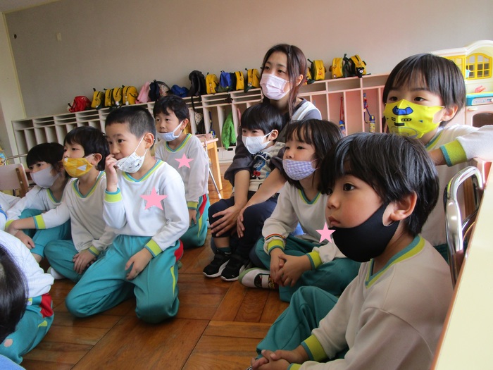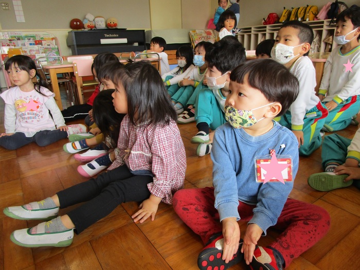 10月28日(水)、今月2回目のちびっこランドが開催されました。8名のお友達と一緒に附属保育園リリーの2歳児2名が幼稚園で楽しいひとときを過ごしました。初めてのお友達もいましたがおままごとやブロック滑り台にと幼稚園にある沢山の遊具に目をキラキラさせて、夢中になって遊んでいました。年長組のお兄さん・お姉さんたちが今回もお世話係をしてくれ、トイレに連れて行ってくれたり、シール帳にシールを貼る際もそっとサポートをしてくれていました。朝の会を終え、次の活動は〝新聞遊び〟新聞のプールを作ったりととてもはしゃいでいました。子ども達のニコニコ笑顔の素敵な表情をご紹介します。 | ||
