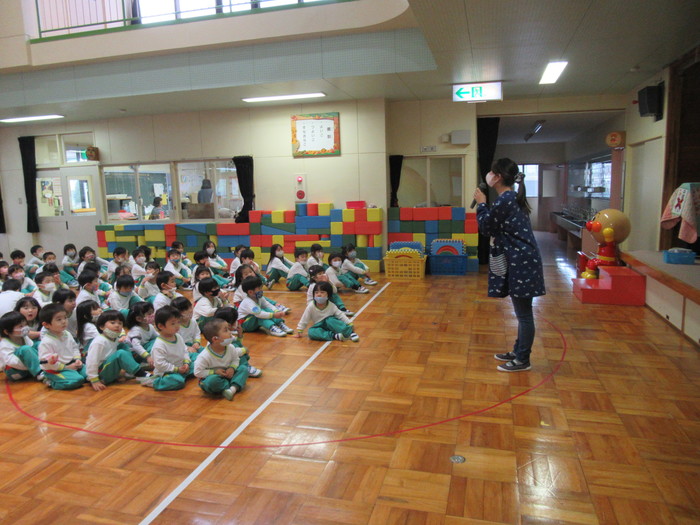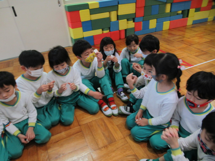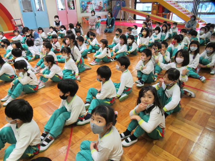 11月の集会は転がしドッジボール大会を全園児で行うことにしました!今回はチーム作り!くじ引きを引いて6チームに分かれました。学年もクラスもバラバラになって縦割り保育で行います。くじを引いた後は、各クラスに分かれてチームの名前決めをしました。大きい子、小さい子一緒になって参加し名前を決めることが出来ました。これから大会に向けて、チーム練習や練習試合・作戦会議をしながら楽しんでいきたいと思います! | ||