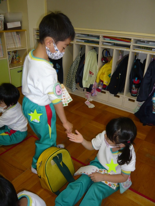 お帰りの会・着替えの様子です! | ||