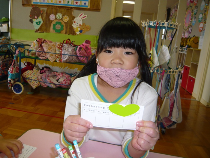 給食カードに自分の名前を書いているところです! | ||