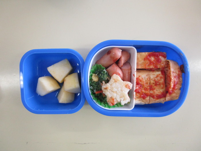 ここ毎日降る雪で、外はすっかり冬景色となりました。大人は雪掻きや足元の悪さで憂鬱な気分になりますが、子ども達は雪が降りだすたびに「雪だー!!」「帰ったら雪だるま作ろっと♪」と、とても喜んでいます。今年も残り一か月となり、子ども達はクリスマスや冬休みの話で盛り上がっています。寒くなり、体調を崩しやすい季節ではありますが、愛情たっぷりのお弁当をモリモリ食べて栄養をとり、元気に2学期を締めくくりたいと思います。今回は、さくら組のお弁当をご紹介します♪ | ||