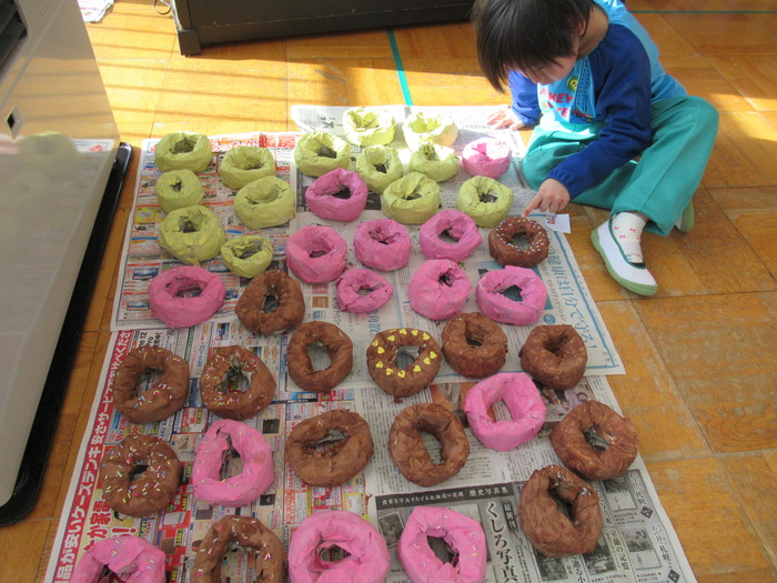 絵の具を使って、美味しそうな『ドーナッツ』作りです! | ||