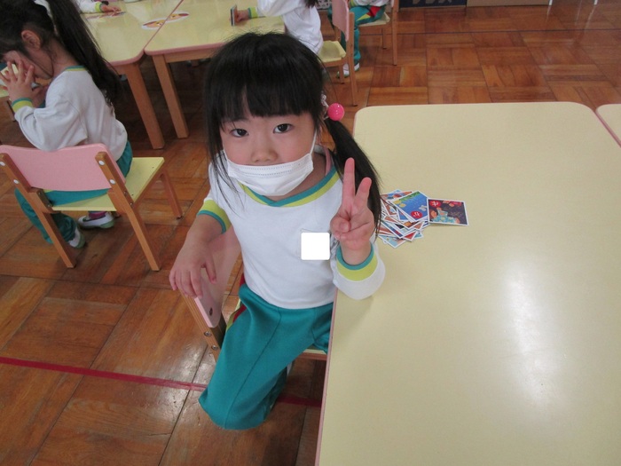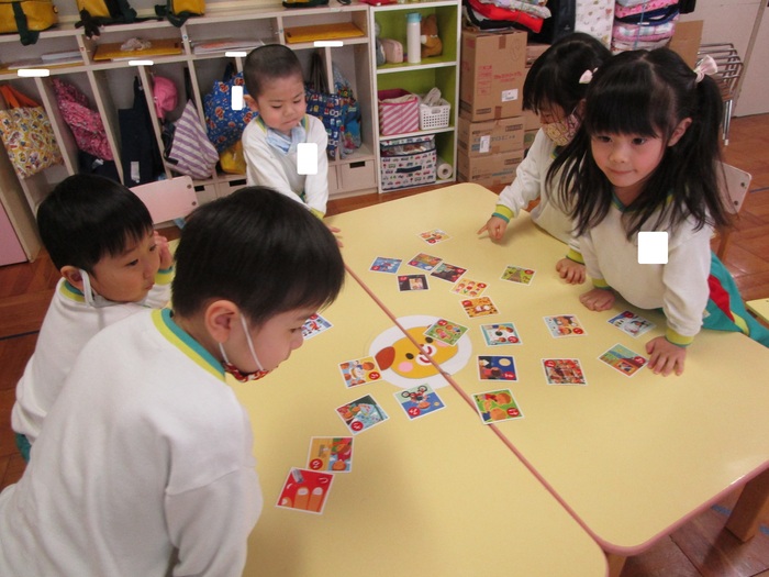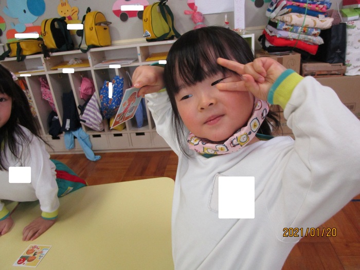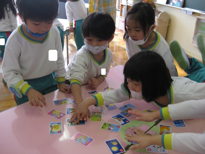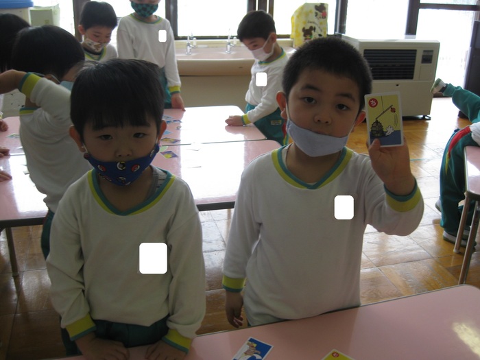 サンタさんからプレゼントでいただいた〝かるた〟でおこなった、かるた会。各クラスでグループごとに分かれ、2回実施しました! 冬休み中に練習に練習を重ねて、この日を迎えた子ども達。真剣な眼差しでかるたの絵札を見つめ、元気な声で『はい!!』と取っていました。中には、あまり取ることが出来ずに悔し涙を流す子も…。年長児と年中児のかるたは、ことわざかるたで子ども達も絵札の絵で覚えるだけではなく一緒にことわざも覚えることができたようです。ご家庭でも継続して取り組み、より一層 文字に興味が持てるといいですね!! | ||