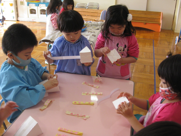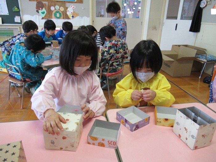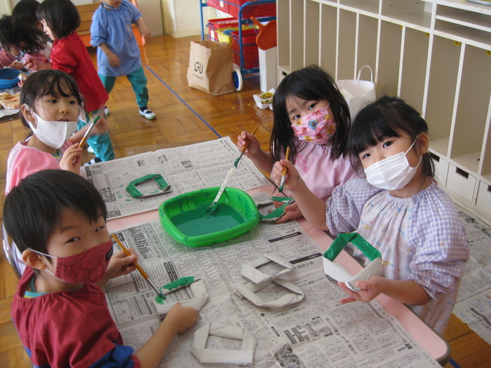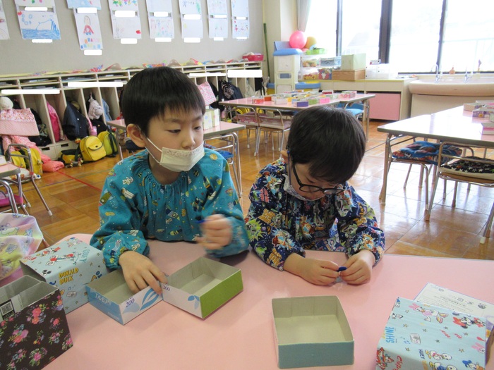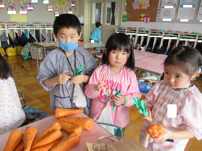 今月のお店やさんごっこ品物作り第2弾!! 各チーム、毎回いろいろな素敵な品物が出来上がってきています!! 思わず〝本物みたい!!〟と言ってしまう程の品物がたくさん★ 子ども達も〝今日、何作るの?〟とお店やさんごっこの品物作りをとっても楽しみにしている様子が窺えます。今後も品物作りそして各クラスでは、お財布作り、お金を切る取り組みの中でお店やさんごっこに向けての期待と意欲が高まっていくことでしょう。そんな子ども達の様子を引き続き、紹介していきますね!! ではでは…、1月の品物作り第2弾★ご紹介しま~す!! | ||