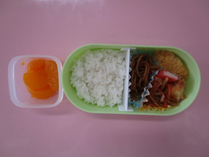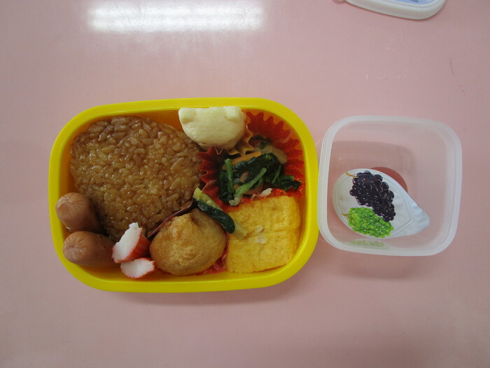 暖かな日差しに春の訪れを感じるこの頃。園庭の雪も溶け始め、目に見える季節の移り変わりに新年度への期待も膨らみます。今回ご紹介するのは、さくら組のお弁当です。「今日のデザートはゼリーだよ!」「卵焼き、おそろいだね!」とお友達同士で嬉しそうに見せ合いながら、いつも美味しくモリモリ食べている子ども達。お家の方々の愛情をしっかり受け取って、毎日元気一杯過ごしています☆ | ||