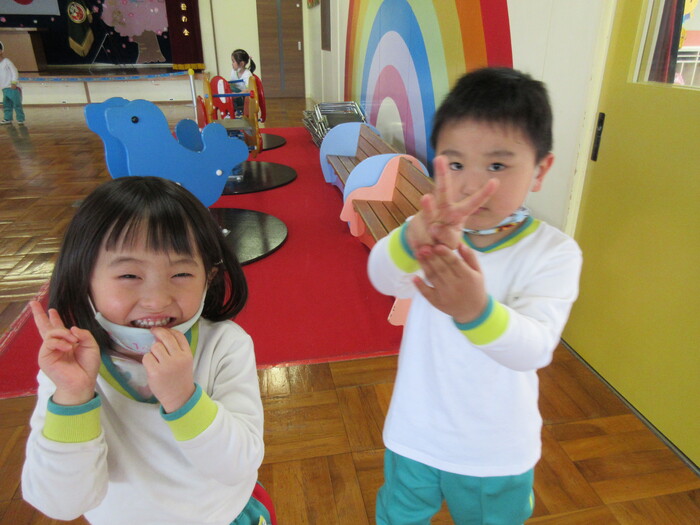 満3歳児からの進級児は、2クラス一緒に楽しく過ごしました! | ||