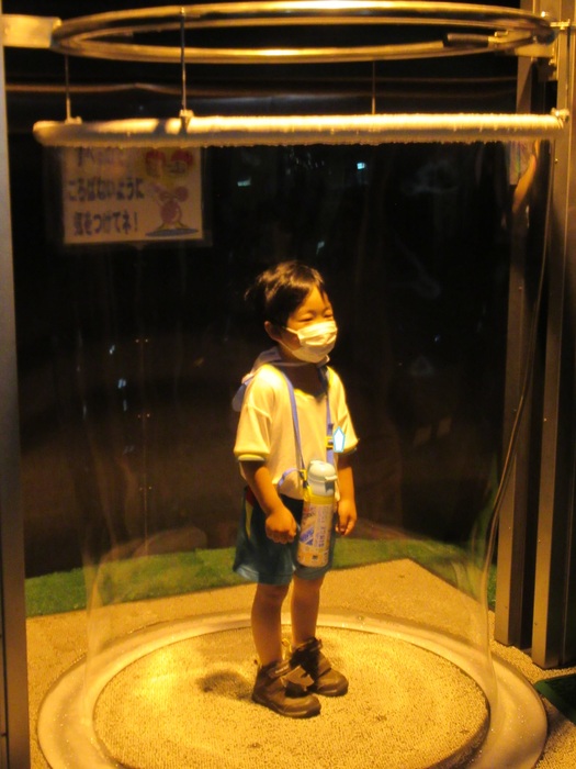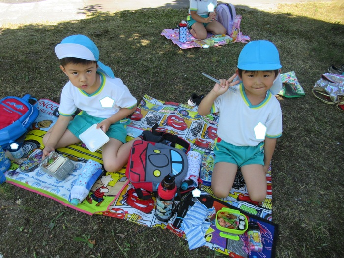 7月31日(土)に、ゆり組のお友達は『日帰り保育』に行ってきました!残念ながら2名の欠席者がいましたが32名お友達は楽しく過ごしました。旭川に行くのが楽しみで園バスの中で大はしゃぎ!しかも!!園バスが新しくなり、乗るのがゆり組のお友達が第一号!新しい園バスはとても涼しく、みんな気に入った様子でした。最初はサイパルに行き、大きなシャボン玉の中に入ったり、錯覚の部屋に入ったりと気になるところで遊びました!みんなで3Dメガネを掛け『サイエンスシアター』を鑑賞。目の前に出てくる度、みんな大興奮していました。カムイの杜に着き、涼しい木陰の下でお弁当を食べました!「外でご飯食べるの楽しい!」と言いい、美味しそうにご飯を食べていました。ご飯の後は施設『わくわくエッグ』で遊びました。子どもたちは水分補給以外の時は立ち止まることなく遊んでいました!いつもと違う遊具でお友達と遊べることが楽しかったみたいです♪帰りのバスでは遊び疲れ、寝ているお友達もちらほら…。園に帰ってきてDVD『3枚のお札』を鑑賞し、いよいよ肝試し…ご褒美シールを貰らえるように頑張りました。戻ってきた後は、ご褒美ペンダントも貰いました♪そして待ちに待ったカレー!デザートはスイカとゼリーの二つ!!みんな沢山食べていました♪帰る前にはおやつを貰い、嬉しそうな子どもたちでした!そんな子どもたちの様子を紹介します。 | ||