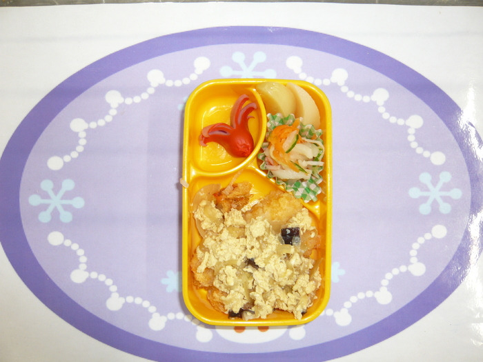 令和4年 2月17日(木) ★ えびのカツとじ ★ 根菜の甘酢和え ★ ウインナー ★ もも缶 | ||