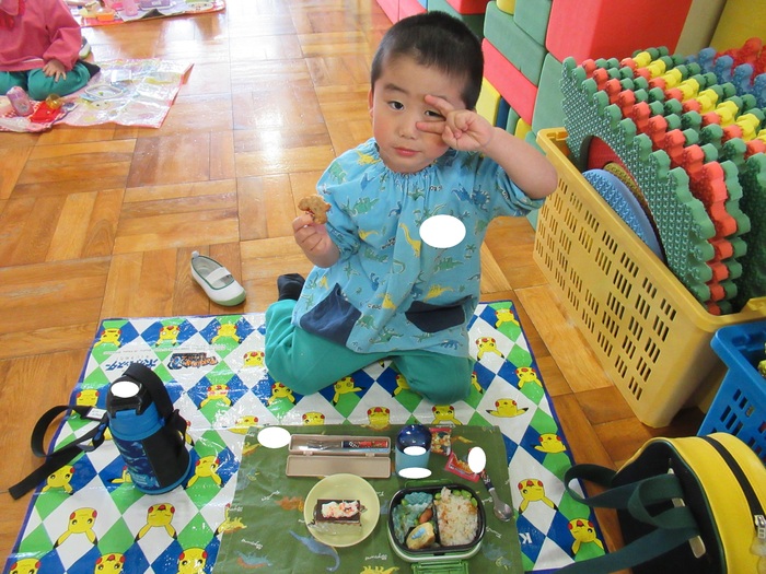 初めてがいっぱいの4月。進級・入園し初めてのお弁当の日💛 おうちの人が作ってくれた愛情いっぱいの手作りお弁当を朝からとっても楽しみにしていた子ども達は『今日のお弁当にウインナー入っているの!』『ゼリーも持ってきたよ!』『お母さんが作ってくれたの!』と嬉しそうに教えてくれました。お昼になり、お弁当を開けた時の全員の子ども達がキラキラした笑顔で『先生見て~!!』という声が園内に響き渡りました。おうちの人達にとってこの笑顔は、何よりもうれしい姿ですね✨ まずは、第1弾!!ばら組とさくら組の愛情いっぱいのお弁当と一緒に子ども達の笑顔いっぱいの姿を紹介します★ | ||