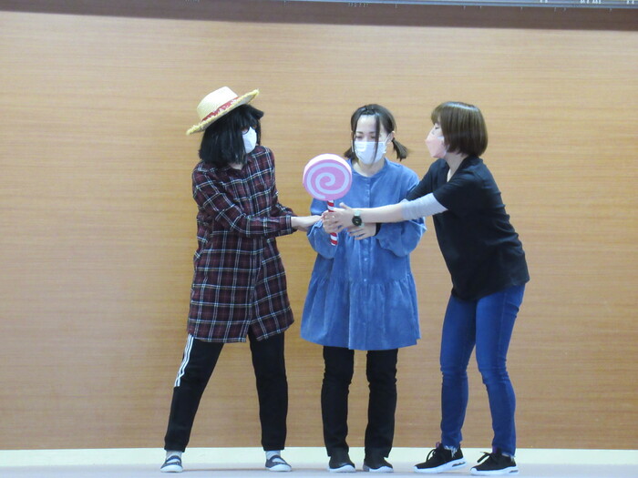 交通事故や事件に巻き込まれないよう、交通安全教室が行われました。DVDを見ながら交通ルールをチェックし、先生達の寸劇を通して横断歩道の渡り方や不審者対応について学びました。怪しいお兄さん&お姉さんの登場に「怖い~」という子もいましたが、「ついて行っちゃダメ!」「知らない人からおやつ貰ったらダメだよ!」という声も聞こえてきました。みんなで「助けてー!」と大きな声で叫ぶ練習や、数名の子ども達に横断歩道の渡り方を実演してもらうなど、『こんな時はどうしたらいいのかな?』とみんなで確認しながらお勉強することが出来ました。 | ||