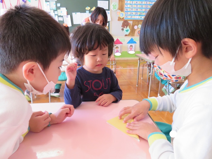 10月のちびっこランドは、12日はボール遊び、18日はリトミックDay、26日は折り紙遊びをしました。最初は不安がっていたお友だちも少しずつ幼稚園に慣れてきてくれました。体を動かしたり、お姉さん・お兄さん達との触れ合いを楽しんだりする姿が見られました! | ||