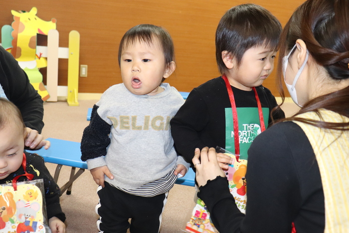 11月は17名のお友達が誕生日を迎えました! ちょっぴり緊張しながら入場した子ども達でしたが、 ステージに上がると嬉しそうな表情を見せていました。 ドキドキしながらも上手に自己紹介する姿はとっても立派でした♪ 大きくなったら「アイドルになりたい!」「仮面ライダーになりたい!」等と自信を持って発表する姿も見られました。 お楽しみは皆が大好きな”アンパンマン”のDVD鑑賞!幼稚園のお友達も保育園リリーのお友達もみんな夢中になって観ていました☆ | ||