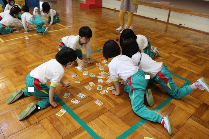 カルタ会が25日に開催されました。 年中少組は各クラス、年長組はホールで行いました。 冬休み中、練習に取り組み気合十分に頑張ったカルタ会。たくさん取れた子、思うように取れなかった子もいましたが、みんな一生懸命頑張っていました。 カルタはひらがなの勉強には最適なので、今後も継続して家族で楽しんで頂けるといいですね!! | ||