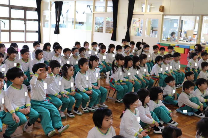 5月11日(木)に交通安全教室が行われました。みんなで交通ルールのDVDを見たり、先生たちの寸劇を見て交通ルールや不審者対応の勉強をしました。 正しい横断歩道の渡り方も数名の園児に実演してもらいました。しっかり手を挙げ左右を確認して渡ることが出来ていました。不審者対応では、先生たちの演技とは知りつつも、怖くて涙を流す子もちょっぴりいました(;^_^A | ||