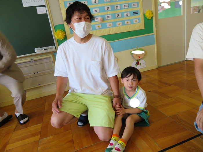 6月27日(火)・28日(水)の2日間で父親参観日がありました。 各クラス、お父さんも交えたゲームや活動を楽しんでいました! 子どもたちは、とてもうれしそうで、とびっきりの笑顔を見せていました。 お忙しい中、ご参加いただきありがとうございました。 | ||