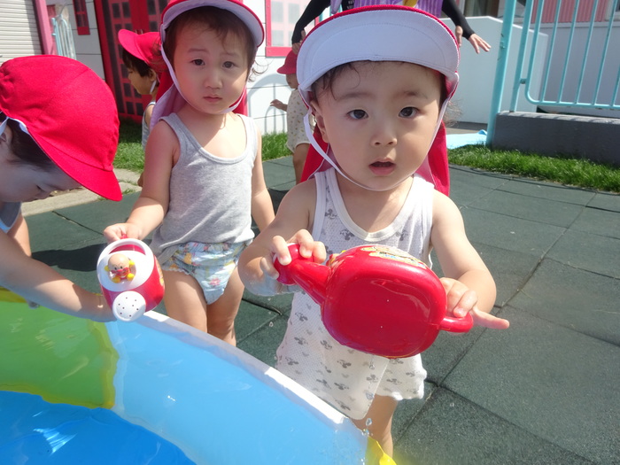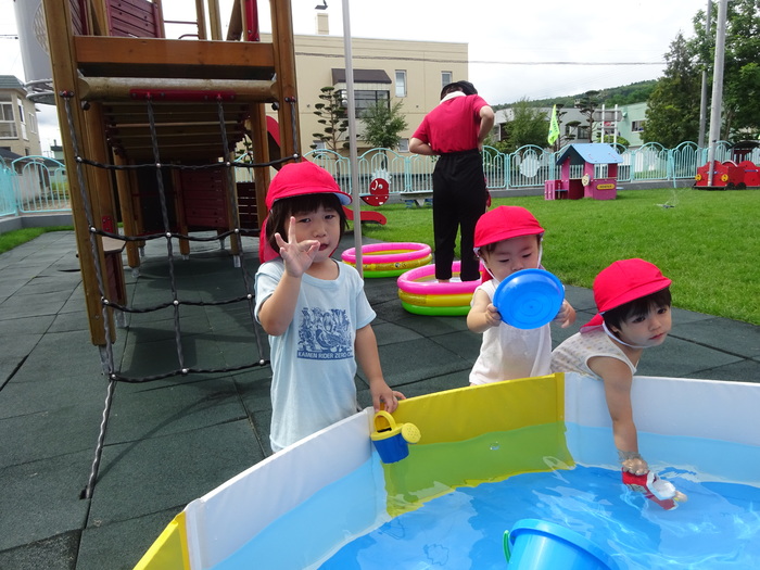 毎日の猛暑にも負けない 保育園リリーの子ども達☆ 水遊びにもすっかり慣れ、 嬉しそうに遊んでいる姿が とてもかわいらしいです♪♪ 水遊びが出来ない日は室内で過ごしていますが 年齢関係なく、ブロック遊びや お飯事をする姿が多くなりました★★ 水分補給や室内外の温度に注意しながら 元気よく過ごしていきたいと思います🎵 | ||