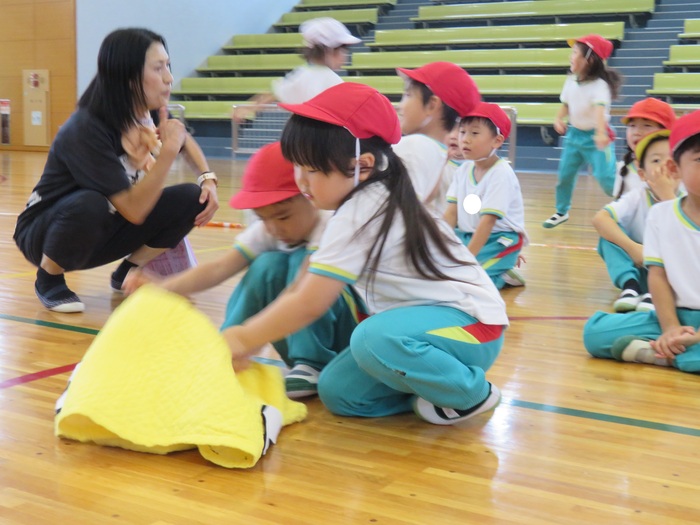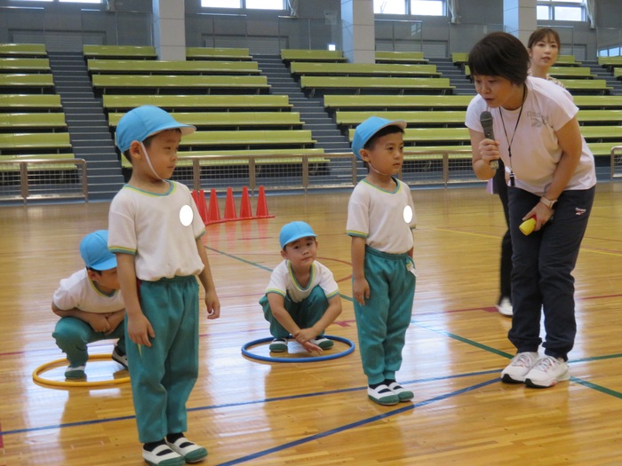青組・赤組それぞれの組を年齢関係なく応援する姿が見られ、運動会本番を楽しみに取り組んでいました。
