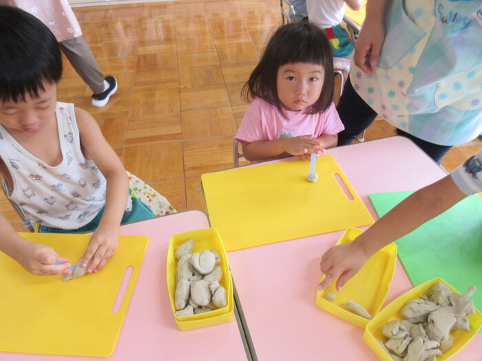ちびっこランド(9月)の様子です。9/4(月)は粘土遊び。9/27(水)は製作遊びでけん玉作りをしました。年中児とリリー保育園、ちびっこランドのみんなで楽しく触れ合いました!
