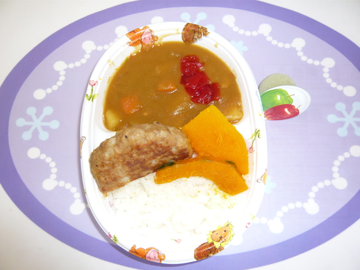 令和5年 12月22日(金) ★ ハンバーグカレー ★ 焼きかぼちゃ ★ 福神漬 ★ ミニゼリー | ||